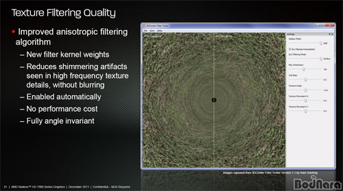 ¶ÇÇÑ ´ë¿ë·® ÅØ½ºÃ³ 󸮸¦ À§ÇÑ Partially Resident Texture (PRT) ±â¼úµµ Áö¿øµÇ¸ç, ÅØ½ºÃ³ ÇÊÅ͸µ ǰÁú °³¼± (anisotropic Filtering ¾Ë°í¸®Áò °³¼±, AF)ÀÌ ÀÌ·ç¾îÁ³´Ù. ´Ù. ±âÁ¸ ¼ÒÇÁÆ®¿þ¾îÀûÀΠ󸮿¡¼ AMD´Â PRT Áö¿øÀ¸·Î Çϵå¿þ¾îÀûÀΠ󸮸¦ Áö¿øÇÑ´Ù. PRT´Â 32TBÀÇ ÅØ½ºÃ³ µ¥ÀÌÅÍ Ã³¸®°¡ °¡´ÉÇϸç, ROPs Á¶ÀÛ ¹× Z ¹öÆÛ À¯´Ö µ¶¸³ Á¶ÀÛ, ±×¸®°í ¸ðµç ÅØ½ºÃ³ Á¶ÀÛÀ» ij½¬ÀÇ Àбâ¿Í ¾²±â·Î Á¶ÀÛÇÒ ¼ö ÀÖ´Â ³»¿ë µîÀÌ Æ÷ÇԵȴÙ.