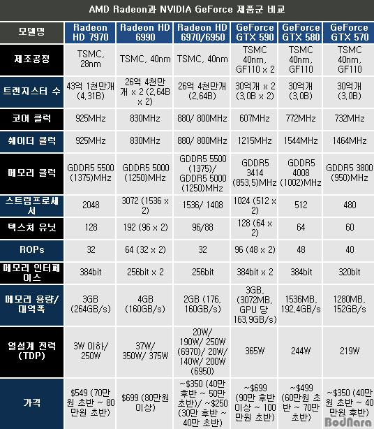 AMD¿Í ¿£ºñµð¾Æ (NVIDIA) ¾ç»ç´Â ½Å°øÁ¤ÀÎ 28nm¸¦ ÀÌ¿ëÇØ Â÷¼¼´ë GPU¸¦ ÁغñÇØ ¿ÔÀ¸¸ç, AMD´Â ¿£ºñµð¾Æ¿¡ ¾Õ¼ ÇÏÀÌ¿£µå ¶óµ¥¿Â HD 7970ÀÇ Ãâ½Ã¸¦ ¹ßÇ¥Çϸç 28nm °øÁ¤À» ±â¹ÝÀ¸·Î ÇÑ Ã¹ ±×·¡ÇÈÄ«µå¸¦ ¹ßÇ¥Çß´Ù.