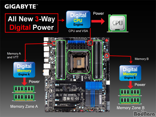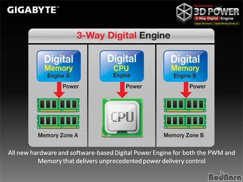 ¸ÞÀκ¸µå¿¡ Àû¿ëµÈ 3°³ÀÇ µðÁöÅÐ ¿£ÁøÀº Çϵå¿þ¾î¿Í ¼ÒÇÁÆ®¿þ¾î¸¦ ±â¹ÝÀ¸·Î Á¦¾îµÇ¸ç, Àü¿ø °ü¸® Á¦¾î¸¦ Æ÷ÇÔÇÑ´Ù. ±â°¡¹ÙÀÌÆ® 3D Power´Â ÆÄ¿ö ·¹±Ö·¹ÀÌÅÍ (PWM ÄÁÆ®·Ñ·¯)ÀÇ ÁÖ¿äÇÑ Á¦¾î¿Í º¸È£ ±â´É, ±×¸®°í ¸ÞÀκ¸µåÀÇ ¾ÈÁ¤¼º ¹× ¿À¹öŬ·° ¼º´ÉÀ» ÃÖÀûÈÇØÁØ´Ù.