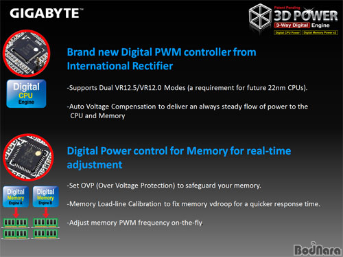 ±â°¡¹ÙÀÌÆ®°¡ Á¦°øÇÏ´Â µðÁöÅÐ PWMÀº Â÷ÈÄ µîÀåÇÒ 22nm ¾ÆÀ̺ñºê¸´Áö (Ivy Bridge) ÇÁ·Î¼¼¼¸¦ Áö¿øÇϸç, VR12.5/ VR12.0 ¸ðµå¸¦ ¸ðµÎ Áö¿øÇϸç, µðÁöÅÐ IR (International Rectifier, ±¹Á¦ Á¤·ù±â) PWM ÄÁÆ®·Ñ·¯¸¦ ÅëÇØ Á֯ļö¸¦ Á¶Á¤ÇÒ ¼ö ÀÖ´Ù.