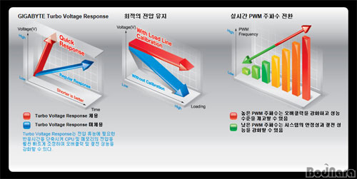 3D PowerÀÇ ÁÖ¿äÇÑ ±â¼ú ÁßÀÇ ÇϳªÀÎ Turbo Voltage Response´Â CPU¿Í ¸Þ¸ð¸® Àü¾ÐÀ» ºü¸£°Ô Á¶Á¤ÇÏ°í ¹ÝÀÀ½Ã°£À» ´ÜÃàÇØ ¿À¹öŬ·°°ú ÀýÀü ¼º´ÉÀ» Çâ»ó½ÃÄÑÁØ´Ù.
