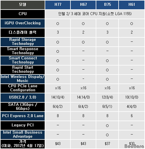 ÀÎÅÚ 7 ½Ã¸®Áî Ĩ¼ÂÀº µ¥½ºÅ©Å¾¿ë°ú ºñÁî´Ï½º¿ë Ĩ¼Â ¸ðµÎ °øÅëÀûÀ¸·Î »õ·Î¿î ±â¼úµéÀ» Áö¿øÇϱ⠶§¹®¿¡, B75 Ĩ¼Â ¿ª½Ã H77 Ĩ¼Â°ú ¸¶Âù°¡Áö·Î ÀÎÅÚ 2/ 3 ¼¼´ë ÄÚ¾î CPU¸¦ Áö¿øÇϱâ À§ÇÑ ±â´ÉÀûÀÎ Â÷ÀÌ´Â ¾ø´Âµ¥, ÁÖ¿ä º¸±ÞÇü Ĩ¼ÂµéÀÇ ±â´ÉÀ» ´ÙÀ½°ú °°ÀÌ Á¤¸®Çß´Ù.