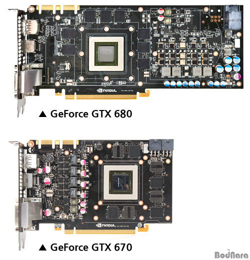 ÁöÆ÷½º GTX 670ÀÇ Àü¿øºÎ´Â GPU 4ÆäÀÌÁî¿Í ¸Þ¸ð¸® 2ÆäÀÌÁî ±¸¼ºÀ¸·Î GTX 680°ú µ¿ÀÏÇÑ ±¸¼ºÀ̳ª ÀüüÀûÀÎ PCB ±æÀÌ´Â 173mm·Î GTX 680ÀÇ 67% ¼öÁØÀ̸ç, Â÷ÈÄ µ¶ÀÚÀûÀÎ Ä𸵠¼Ö·ç¼ÇÀ̳ª PCB ¼³°è, »óÀ§ GK104 Äھ »ç¿ëµÈ ÁöÆ÷½º GTX 680ÀÇ PCB¸¦ ÀÌ¿ëÇÑ ±×·¡ÇÈ Ä«µå Á¦Á¶»çµéÀÇ Ä¿½ºÅÒ ¸ðµ¨µéÀÌ ´Ù¼ö Ãâ½ÃµÉ °ÍÀ¸·Î ¿¹»óµÈ´Ù.