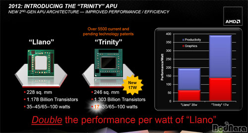 2¼¼´ë APU·Î ¾Ë·ÁÁø AMD Æ®¸®´ÏƼ (Trinity)´Â CPU ¾ÆÅ°ÅØÃ³ Àüȯ ¹× ¶óµ¥¿Â ±×·¡ÇÈ ÄÚ¾î °³¼±À» ÅëÇØ CPU ¼º´É Çâ»ó»Ó¸¸ ¾Æ´Ï¶ó Àü·Â È¿À² ¹®Á¦¿¡µµ ÁýÁßÇß´Ù.