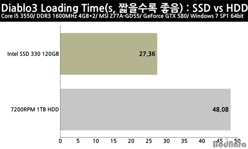 Áö³ ±â»ç¿¡¼ »ìÆìº» Å©¶óÀ̽ýº2³ª LOL°ú ¸¶Âù°¡Áö·Î, µð¾Æºí·Î3 ¿ª½Ã ÇÁ·Î±×·¥ ½ÇÇà°ú ·Îµù¿¡ ÀÖ¾î SSD°¡ HDDº¸´Ù ¿ì¼öÇÑ ¸ð½ÀÀ» º¸À̰í ÀÖ´Ù. ºñ·Ï µð¾Æºí·Î3ÀÇ ·Îµù ¹Ù°¡ ¸ØÃß´Â ÁöÁ¡Àº SSD¿Í HDD°¡ Å« Â÷À̸¦ º¸ÀÌÁö ¾ÊÁö¸¸, ½ÇÁ¦ °ÔÀÓ È¸é Àüȯ¿¡ °É¸®´Â ½Ã°£Àº SSD°¡ ºü¸¥ °ÍÀ» ¾Ë ¼ö ÀÖ´Ù.