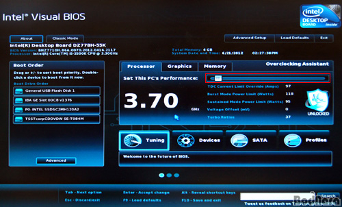 ºñÁÖ¾ó ¹ÙÀÌ¿À½ºÀÇ Æ¯Â¡Àº ¸¶¿ì½º¸¦ µå·¡±×ÇÏ´Â °Í¸¸À¸·Î CPU Ŭ·°À» º¯°æÇÒ ¼ö ÀÖ´Â Æ©´× ½½¶óÀÌ´õ°¡ Á¦°øµÇ´Â Á¡Àε¥, Æ©´× ½½¶óÀÌ´õ·Î Ŭ·°À» º¯°æÇÏ´Â °æ¿ì ÇØ´ç Ŭ·°¿¡ ÀûÇÕÇÑ ¼öÁØÀ¸·Î Àü¾ÐÀ» Æ÷ÇÔÇÑ ±âŸ ¼³Á¤ÀÇ ¼öÄ¡°¡ ÇÔ²² ¹Ù²î±â ¶§¹®¿¡ »ç¿ëÀÚ´Â ÀÏÀÏÀÌ CPU ¹èÀ²À̳ª Àü¾Ð ¼öÄ¡¸¦ º¯°æÇÏ´Â ¼ö°í ¾øÀÌ °£ÆíÇÏ°Ô ¿À¹öŬ·°À» ½ÃµµÇÒ ¼ö ÀÖ´Ù.