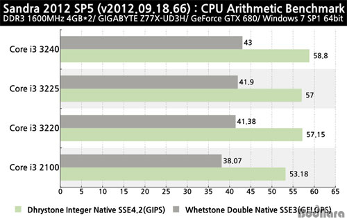 CPU Ŭ·°ÀÌ µ¿ÀÏÇÑ ÄÚ¾î i3 3220°ú i3 3225´Â ´ë·« ¿Àó ¹üÀ§ ³»ÀÇ ¼º´É Â÷À̸¦ º¸¿©ÁÖ¸ç, µ¿ÀÛ Å¬·°ÀÌ °¡Àå ³ôÀº ÄÚ¾î i3 3240ÀÌ ¿¬»ê ¼º´ÉÀº °¡Àå ¿ì¼ÇÑ °ÍÀ¸·Î Ÿ³µ´Ù.