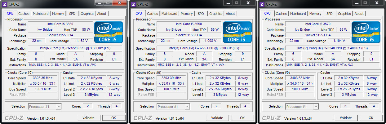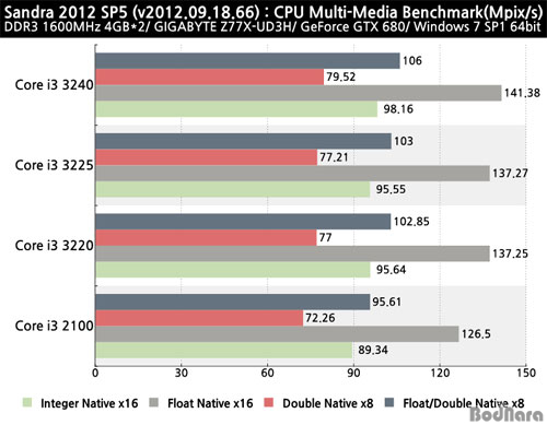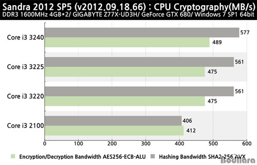 Áï, 3.1GHz·Î Å×½ºÆ® »ùÇà Áß µ¿ÀÛ Å¬·°ÀÌ ³·Àº ÄÚ¾î i3 2100ÀÌ °¡Àå ³·¾ÒÀ¸¸ç, 3.3GHz·Î µ¿ÀÏÇÑ Å¬·°À¸·Î µ¿ÀÛÇÏ´Â ÄÚ¾î i3 3220°ú 3225´Â µ¿ÀÏÇÑ ¼öÄ¡·Î ³ôÀº °á°ú¸¦ º¸¿´À¸¸ç, 3.4GHz·Î °¡Àå ºü¸¥ ¼Óµµ·Î µ¿ÀÛÇÏ´Â ÄÚ¾î i3 3240ÀÌ °¡Àå ³ôÀº ¾ÏÈ£È ¼º´ÉÀ» Á¦°øÇÑ´Ù.