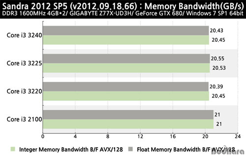 µ¿ÀÏÇÑ DDR3 1600MHz ¸Þ¸ð¸®¸¦ Àû¿ëÇßÀ» °æ¿ì ¸Þ¸ð¸® ´ë¿ªÆøÀº ¾ÆÀ̺ñºê¸´Áö ±â¹Ý ÄÚ¾î i3 32xx ½Ã¸®Áî°£¿¡ ´«¿¡ ¶ç´Â Â÷ÀÌ´Â ¾øÁö¸¸, »÷µðºê¸´Áö ±â¹Ý ÄÚ¾î i3 2100ÀÌ ¾ÆÀ̺ñºê¸´Áö ±â¹Ý ÄÚ¾î i3 32xx ½Ã¸®Áî º¸´Ù Á» ´õ ³ô°Ô ÃøÁ¤µÇ¾ú´Ù.