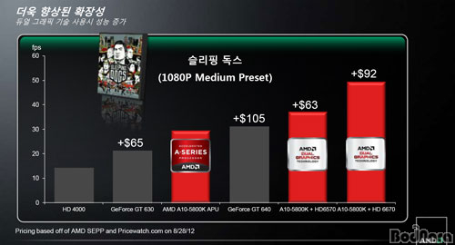 AMD´Â 1¼¼´ë ¶ó³ë APUÀÇ ³»Àå GPU¿Í º¸±ÞÇü ¿ÜÀå GPU Á¶ÇÕÇØ ¼º´ÉÀ» ³ô¿©ÁÖ´Â µà¾ó ±×·¡ÇȽº (Dual Graphics) ±â¼úÀ» Áö¿øÇßÀ¸³ª DX11 Áö¿ø¿¡ ÀϺΠÇÑÁ¤µÇ¾ú´Ù.