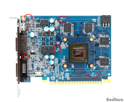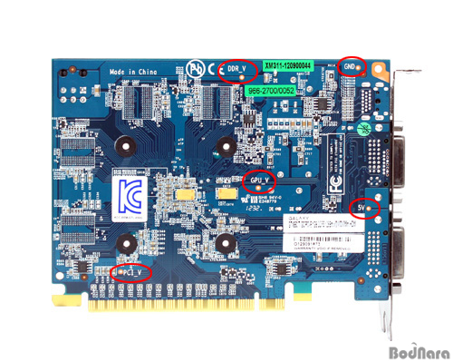 ¶ÇÇÑ º°µµÀÇ Àü¾Ð ÃøÁ¤±â¸¦ ¿¬°áÇÏ¿© ±×·¡ÇÈÄ«µå ÁÖ¿ä ºÎÀ§ÀÇ Àü¾ÐÀ» È®ÀÎÇÒ ¼ö ÀÖ´Â Àü¾Ð üũ Æ÷ÀÎÆ®(GPU, GND, DDR, PCI, 5V)°¡ 5°³ Á¦°øµÇ¾î ´õ¿í ³ôÀº ¼öÁØÀÇ ¿À¹öŬ·°À» ½ÃµµÇÏ·Á´Â À̵鿡°Ô À¯¿ëÇÏ´Ù. ±×¸®°í PCB Àü¸éºÎ´Â Ä𸵠¼Ö·ç¼Ç¿¡ ÀÇÇØ °¡·ÁÁö´Â ºÎºÐÀÌ Àֱ⠶§¹®¿¡ ÈĸéºÎ¿¡µµ Àü¾Ð ÃøÁ¤±â¸¦ ¿¬°áÇÒ ¼ö ÀÖ´Â ±¸Á¶ÀÌ´Ù.