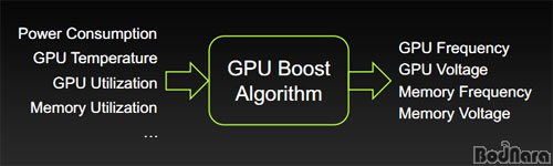 ÇÑÆí, NVIDIA(¿£ºñµð¾Æ)¿¡¼´Â ÄÉÇ÷¯ ¾ÆÅ°ÅØÃ³ ±â¹Ý ÁöÆ÷½º 600 ½Ã¸®Áî Áß ÆÛÆ÷¸Õ½º±ÞÀÎ ÁöÆ÷½º GTX 660 ÀÌ»ó¿¡ ÀÚµ¿À¸·Î ±×·¡ÇÈ Ä«µåÀÇ ¼º´ÉÀ» ÃÖÀûÈ ½ÃŰ´Â GPU Boost ±â¼úÀ» Áö¿øÇÑ´Ù.