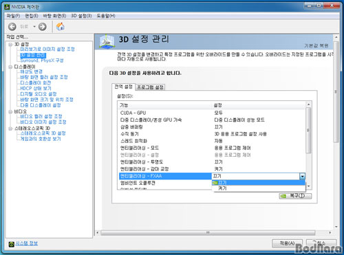 FXAA´Â ƯÁ¤ API¿¡ ÀÇÁ¸ÇÏÁö ¾Ê°í °æÀï ÈÄó¸® AA±â¼úÀÎ MLAA¿Í ºñ±³ÇØ ÅØ½ºÆ®/ ÅØ½ºÃ³ ¹¶°³Áü°ú °°Àº ±×·¡ÇÈ ¿Ö°î Çö»óÀÌ °³¼±µÇ¾ú±â¿¡ ÃÖ±Ù Ãâ½ÃµÈ ÄÝ ¿Àºê µàƼ ºí·¢¿É½º2(FXAA)³ª ¾î»õ½Å Å©¸®µå3(Anti-Aliasing Quality : High)¿Í °°ÀÌ °ÔÀÓ ÀÚüÀûÀ¸·Î Áö¿øÇÏ´Â °æ¿ì°¡ ´Ã°í ÀÖÀ¸¸ç, °ÔÀÓ¿¡¼ Áö¿øÇÏÁö ¾ÊÀ» °æ¿ì NVIDIA(¿£ºñµð¾Æ) Á¦¾îÆÇ³» 3D ¼³Á¤À» ÀÌ¿ëÇØ °Á¦ Àû¿ëÇÒ ¼ö ÀÖ´Ù.