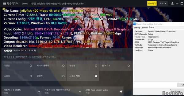 ÇÑÆí, AMD ¶óµ¥¿Â GPUÀÇ ¸ÖƼ¹Ìµð¾î Ư¼º Áß ÇϳªÀÎ µ¿¿µ»ó º¸°£ ±â´ÉÀÎ Ç÷çÀ̵å