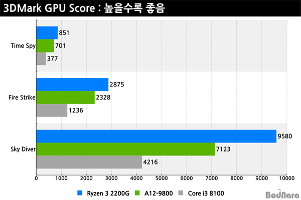 3DMark¸¦ ÀÌ¿ëÇØ ¶óÀÌÁ¨ 3 2200G¿Í A12-9800, ÄÚ¾î i3 8100
