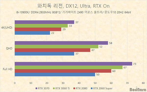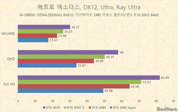 ¾à 81%, RTX 2080 ´ëºñ ¾à 31% ³ô°í, RTX 3070°ú ºñ±³Çصµ ¾à 85% ¼öÁØ¿¡ ´ÞÇÏ´Â °ÍÀ¸·Î ÃøÁ¤µÈ´Ù.