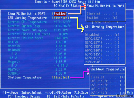 ¡¡ PC Health Status¿¡¼´Â ¼Ë´Ù¿î ¿Âµµ¼³Á¤ Çϳª¸¸ Á¶ÀýÇÒ ¼ö ÀÖÀ¸¸ç