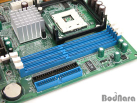 DIMMÀ¸·Î¸¸ 3°³°¡ ÀÚ¸®Àâ°í ÀÖ´Ù. ¸ÞÀκ¸µå ¸Å´º¾ó¿¡´Â DDR400ÀÏ °æ¿ì 1°³ÀÇ DIMM¸¸, DDR333ÀÏ °æ¿ì¿¡´Â 2°³ÀÇ