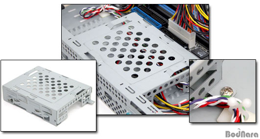 ºÐ¸®µÇ´Â ÇÁ·¹ÀÓ ¾Æ·§ÂÊ¿¡´Â ÄÉÀ̽º¿¡ °íÁ¤µÇ´Â ¶Ç ÇϳªÀÇ 3.5" È÷µç º£À̰¡ ´Þ·ÁÀÖ´Ù. ¿©±â¿¡ Çϵåµð½ºÅ©¸¦ ÀåÂøÇÔÀ¸·Î½á ¿ÜºÎ¿¡ 2°³ÀÇ