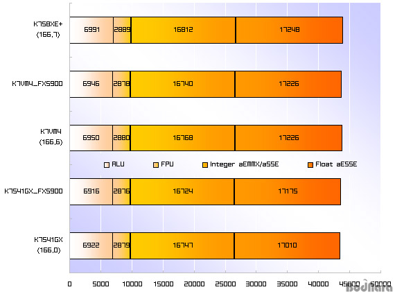 »êµå¶ó 2004ÀÇ CPU Arithmetic°ú CPU Multimedia Å×½ºÆ®ÀÇ ½ºÄÚ¾îÀÌ´Ù. FSBÀÇ ¹Ì¹¦ÇÑ Â÷ÀÌ¿¡ µû¸¥ ¾à°£ÀÇ Â÷À̰¡ ÀÖ±ä ÇÏÁö¸¸, ´ëüÀûÀ¸·Î ¸ðµç º¸µå°¡ °ÅÀÇ À¯»çÇÑ ¼º´ÉÀ» º¸À̰í ÀÖ´Ù. ±×·¡ÇÁ »óÀ¸·Î´Â Å©°Ô Â÷À̸¦ ´À³¢±â ¾î·Æ°í, ±»ÀÌ ¼øÀ§¸¦ ¸Å±âÀÚ¸é ´«²Å¸¸Å­ÀÇ Â÷ÀÌ·Î K7S8XE+°¡ °¡Àå ÁÁÀº ½ºÄھ º¸À̸ç, K7VM4, K7S41GXÀÇ ¼ø¼­·Î µÚ¸¦ µû¸£°í ÀÖ´Ù. FSBÀÇ Â÷À̸¦ »ý°¢Çϸé Â÷À̰¡ ÀüÇô ¾ø´Ù. ƯÈ÷ ³»Àå ±×·¡ÇÈÄھ »ç¿ëÇÒ °æ¿ì CPU ¿¬»ê ¼Óµµ¸¦ ¾î´À Á¤µµ ¼Ò¸ðÇÏ´Â °ÍÀÌ Á¤¼³À̰Ǹ¸, K7VM4¿Í K7S41GX µÑ ´Ù CPU ¼º´ÉÀÇ Ç϶ôÀÌ °ÅÀÇ ¾ø´Ù½ÃÇÇ ÇÑ °ÍÀÌ Æ¯Â¡ÀÌ´Ù. Å×½ºÆ® ¿ÀÂ÷ ¶§¹®¿¡ K7VM4´Â º°µµÀÇ ±×·¡ÇÈÄ«µå¸¦ ²È¾ÒÀ» ¶§°¡ ¾à°£ ´õ ½ºÄھ ³·±â±îÁö ÇÑ´Ù.
