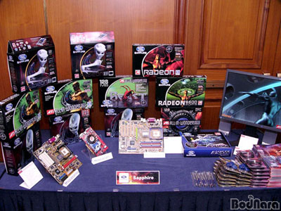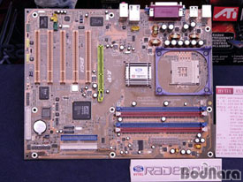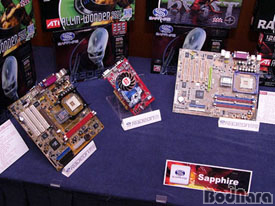 Micro-ATX ŸÀÔÀÇ Radeon 9100 Pro IGP°¡ Àü½ÃµÇ¾î ÀÖ´Ù. ±âÁ¸ 9100 IGP¿¡ ºñÇØ S-ATA¿Í