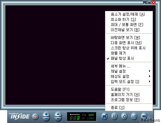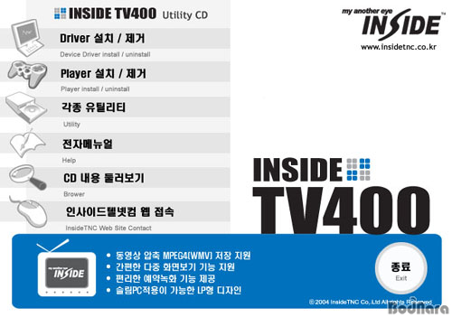 ³ÖÀ¸¸é Ãʱ⠸޴º ȸéÀÌ ³ªÅ¸³´Ù. ÀÌ È¸é¿¡¼ Inside TV400 µå¶óÀ̹ö¿Í TV ÇÁ·Î±×·¥ ¹× ¸ÞÀκ¸µå Ĩ¼Â À¯Æ¿¸®Æ¼¸¦