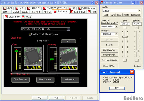 Catalyst ÃֽйöÁ¯ÀÎ 4.6¿¡¼´Â Rextech Radeon 9550 Extereme PlusÀÇ Å¬·°À» Á¶ÀýÇÒ ¼ö ¾ø¾ú´Ù.