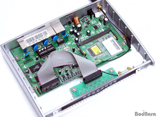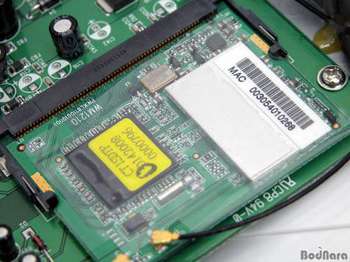 ¸ÞÀκ¸µå¿¡ ÀåÂøµÈ Mini PCI ¹ö½º¸¦ ÅëÇØ ¿¬°áµÈ ¸ðµâÀº Intersil»çÀÇ GT1SDTPĨ¼ÂÀ» ÀåÂøÇÑ WiFi¸ðµâ·Î¼,