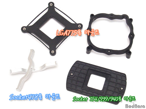 CNPS7700 ½Ã¸®Áî¿¡¼­ Áö¿øÇÏ´Â ¼ÒÄÏ Å¸ÀÔÀº LGA775, Socket478, Socket 754/939/940ÀÌ´Ù. ¾Æ½±°Ôµµ Socket A¿¡¼­´Â »ç¿ëÇÒ ¼ö ¾ø´Ù. Äð·¯°¡ ´ê´Â ¹Ù´Ú¸éÀ̳ª ¸¶¿îÆ®´Â Å©°Ô ´Þ¶óÁöÁö ¾Ê¾ÒÀ¸´Ï ÀßÇÏ¸é ¼³Ä¡ÇÒ ¼ö ÀÖÀ» °Íµµ °°Áö¸¸, À°ÁßÇÑ ¹«°Ô°¡ Äھ ´©¸£´Â °Íµµ ºÎ´ã½º·´°í, Àå±â°£ ÄÉÀ̽º¸¦ ¼¼¿ö ³õ¾ÒÀ» ¶§ ±âÆÇÀ̳ª ¸¶¿îÆ®°¡ ÈÖ¾î ÄÚ¾î¿Í Á¦´ë·Î ¹ÐÂøµÇÁö ¾ÊÀ» À§ÇèÀ» »ý°¢ÇÑ´Ù¸é Æ÷±âÇØ¾ß ÇÒ  µí ÇÏ´Ù. Socket A º¸µåµéÀÇ ¼ÒÄÏÀÌ ´ëºÎºÐ ±âÆÇ ³¡ÂÊÀ¸·Î ¸ô·Á ÀÖ¾î ÆÄ¿ö¼­ÇöóÀÌ¿Í ´ê´Â °æ¿ìµµ ¸¹À» °ÍÀ̰í... ¾î·µç, Á¦°øµÇ´Â ¸¶¿îÆ®´Â ÀÎÅÚ ÆæÆ¼¾ö4 / ¼¿·¯·Ð ÇÁ·Î¼¼¼­¿Í AMD 64 ÇÁ·Î¼¼¼­¿¡ ¼³Ä¡ÇÒ ¼ö ÀÖµµ·Ï Á¦°øµÈ´Ù.