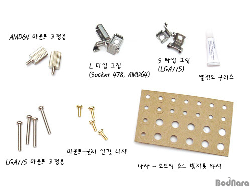 LGA775¿¡ ÀåÂøÇϱâ À§ÇÑ ¹éÇ÷¹ÀÌÆ®¿Í ¸¶¿îÆ®, ³ª»ç¸¦ °áÇÕÇÑ ¸ð½À
