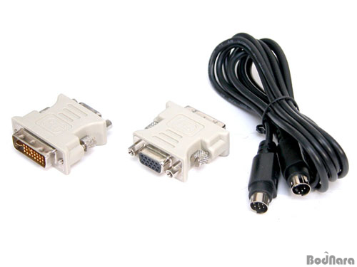 XFX GeForce 6600GT AGP°¡ µà¾ó DVI Ãâ·ÂÀ» Áö¿øÇÏ´Â °ü°è·Î 2°³ÀÇ DVI to D-SUB º¯È¯ Á¨´õ°¡ µé¾îÀÖÀ¸¸ç S-Video ÄÉÀ̺íÀÌ ÇÔ²² Á¦°øµÈ´Ù.