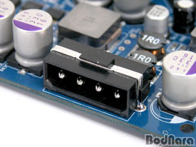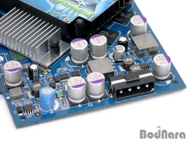GeForce 6600GT TDH AGP ¹öÀüÀÇ Àü¿øºÎ´Â PCI Express ¹öÀüÀÎ 6600GT¿Í ´Ù¸¥ ¸ð½ÀÀ» Çϰí Àִµ¥, ¹Ù·Î ¿ÜºÎ Àü¿ø ÀÔ·Â ´ÜÀÚ°¡ ´Þ¸° °ÍÀÌ´Ù. PCI Express¿ë 6600GT´Â PCI Express ½½·ÔÀ» ÅëÇØ Àü¿øÀ» °ø±Þ¹Þ¾ÒÁö¸¸, AGP ¹öÀüÀÇ °æ¿ì´Â AGP ½½·Ô ¿Ü¿¡ ºÎÁ·ÇÑ ºÎºÐÀ» ±âÁ¸ÀÇ AGP ±×·¡ÇÈ Ä«µåµéó·³ 12V Àü¿ø Ä¿³ØÅ͸¦ »ç¿ëÇÏ¿© °ø±Þ¹Þ°í ÀÖ´Ù.