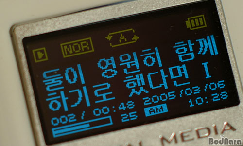 16~192KbpsÀÇ ´Ù¾çÇÑ ºñÆ®·¹ÀÌÆ®¸¦ Áö¿øÇϱ⠶§¹®¿¡ ³ìÀ½ ½Ã°£°ú À½ÁúÀ» À¯µ¿ÀûÀ¸·Î Á¶ÀýÇÒ ¼ö ÀÖ´Ù. ¸Þ´º¿¡ µé¾î°¡¸é ¿©·¯ °¡Áö ¼³Á¤ ¸Þ´º°¡ Àִµ¥, Ç÷¹À̾î·Î¼ °¡Àå Áß¿äÇÑ ºÎºÐÀº À½Çâ