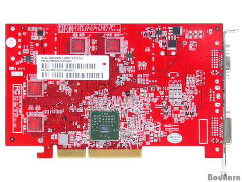 Äð·¯¿Í ¼­¸Ö ½ºÆ¼Ä¿ ÆÐµå(?)¸¦ Á¦°ÅÇÑ Radeon X700 AGP¸¦ »ìÆìº¸¸é Àü¸é¿¡ BGA ŸÀÔÀÇ DDR3 ¸Þ¸ð¸®°¡ º¸À̸ç, TSOP ¸Þ¸ð¸®¸¦ »ç¿ëÇÒ Á¦Ç°Àº ¸Þ¸ð¸® ºÎºÐÀÌ ´ç¿¬È÷ º¯ÇÒ °ÍÀÌ´Ù. µÞ¸é¿¡´Â ¼­¸Ö ÆÐµå¸¦ Á¦°ÅÇÑ PCI Express -> AGP º¯È¯ ºê¸´Áö Ĩ¼ÂÀÎ RialtoÀÇ ¸ð½Àµµ È®ÀÎÇÒ ¼ö Àִµ¥, Àü¸é ±×·¡ÇÈ Ä¨¼ÂÀÌ ´Þ¸° ºÎºÐ¿¡ Áß°£Á¤µµ °ÉÃÄÁø À§Ä¡¿¡ ´Þ·ÁÀÖ´Ù.