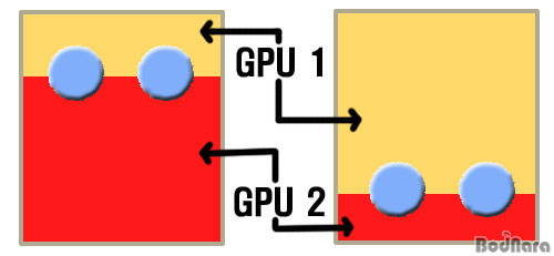 À§ÀÇ À̹ÌÁö´Â °£´ÜÇÏ°Ô ¼³¸íÇϱâ À§Çؼ ¸¸µç À̹ÌÁö·Î½á µ¿±×¶õ µÎ °³ÀÇ ¿øÀ» SFR/Scissor ¹æ½Ä¿¡¼ ·£´õ¸µ ½ÃŰ°Ô µÇ¸é ù ¹øÂ° ºÎºÐ¿¡¼± GPU2 ÂÊ¿¡ ¸¹Àº ºÎÇϰ¡ °É¸®¸ç µÎ ¹øÂ° ºÎºÐ¿¡¼´Â GPU1 ÂÊ¿¡ ºÎÇϰ¡ ½ò¸®°Ô µÇ¾î ÀÖ´Ù. ÇÏÁö¸¸ ü½ºÆÇó·³ ȸéÀ» ºÐÇÒÇÑ SuperTiling ¹æ½ÄÀ» »ç¿ëÇÏ°Ô µÇ¸é ÀÌ·± ºÎÇÏ Á¶ÀýÀÌ Çʿ䰡 ¾ø°Ô µÈ´Ù.
