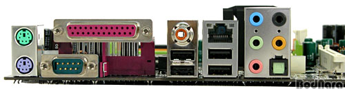 ¹éÆÐ³ÎÀÇ ±¸¼ºÀº PS/2 Űº¸µå¿Í ¸¶¿ì½º Æ÷Æ®, ½Ã¸®¾ó Æ÷Æ®, ÆÐ·¯·² Æ÷Æ®, Coaxial Æ÷Æ®, USB 2.0 2Æ÷Æ®, ·£Æ÷Æ®¿Í USB 2.0 2Æ÷Æ®, »ç¿îµå Ãâ·Â Æ÷Æ®µé°ú SPDIF Ãâ·Â Æ÷Æ®¸¦ Á¦°øÇϰí ÀÖ´Ù. ´Ù¸¥ ¸ÞÀκ¸µåµé°ú Â÷À̶ó¸é DTS Connect¸¦ ¸ÞÀκ¸µå ÃÖÃÊ·Î Áö¿øÇÏ¿© Coaxial°ú SPDIF Ãâ·ÂÀ» ÀÌ¿ëÇÏ¿© DTS ½ÅÈ£¸¦ µðÄÚ´õ¿¡¼­ Ç¥ÇöÇØÁشٴ °ÍÀÌ´Ù.