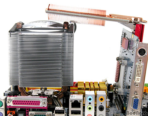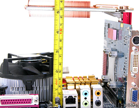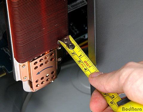 Á¤Ç° Äð·¯ÀÇ °æ¿ì ÀåÂøÇßÀ» °æ¿ì ³ôÀ̸¦ ÁÙÀÚ·Î ÃøÁ¤ÇÑ °á°ú ¾à 6.5cm °¡·®ÀÇ ³ôÀ̸¦ º¸¿´À¸¸ç, ASUS Extreme N6600GT Silencer/HTD¸¦ 90µµ °¢µµ·Î À̵¿ÇÏ¿© ¼³Ä¡ÇÏ¿´À» °æ¿ì ¾à 5cm Á¤µµÀÇ ³ôÀÌÀÇ ¿©À¯¸¦ º¸¿´´Ù. Àüü ³ôÀÌ´Â ¾à 12cm Á¤µµ·Î ¸ÞÀκ¸µå¿¡ ÀåÂøÇÏ¿´À» ¶§ 12cmº¸´Ù ³·¾Æ¾ß SilentCoolÀ» 90µµ °¢µµ·Î ¸ÂÃß°í »ç¿ëÇϴµ¥ ¹®Á¦°¡ ¾ø´Ù.
