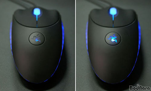 PC¿¡ ¿¬°áÇÑ Razer Copperhead´Â »çÁøÃ³·³ 3±ºµ¥¿¡¼­ °íÈÖµµ LED ºûÀ» »Õ¾î³½´Ù. ½ºÅ©·Ñ ÈÙ ºÎºÐ°ú °¡¿îµ¥ ÀÖ´Â ·Î°í ºÎºÐ, ±×¸®°í ¸¶¿ì½º ÁÖº¯À» µÎ¸¥ ¶óÀÎÀÌ´Ù.