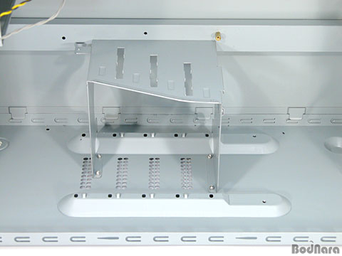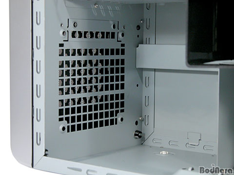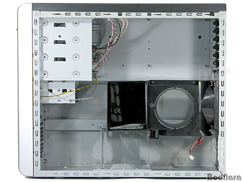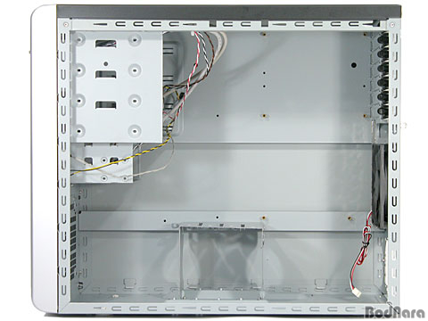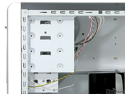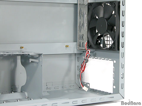 HDD¸¦ ¼³Ä¡Çϱâ À§ÇÑ ºÎºÐÀº ÄÉÀ̽ºÀÇ Áß°£ ºÎºÐ¿¡ À§Ä¡Çϴµ¥ Àü¸é ÆÒÀ» ¼³Ä¡ÇÒ °æ¿ì ¿ÜºÎ¿¡¼­ À¯ÀÔµÈ Â÷°¡¿î °ø±â°¡ °ÅÀÇ Á÷Á¢ÀûÀ¸·Î À̵¿Çϱ⠶§¹®¿¡ HDD¿¡¼­ ¹ß»ýµÇ´Â ¹ß¿­Àº ´Ù¸¥ ÄÉÀ̽ºµé°ú ºñ±³ÇÏ¿© È¿À²ÀûÀ¸·Î ½ÄÇôÁÙ ¼ö ÀÖ´Â ±¸Á¶¸¦ º¸¿©ÁØ´Ù.
