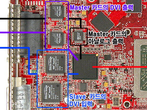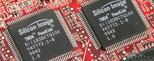 Dual-Link DVI ½ÅÈ£¸¦ ÀԷ¹ޱâ À§ÇÑ DVI ¸®½Ã¹ö´Â Silicon Image»çÀÇ Sil163B Ĩ¼ÂÀÌ »ç¿ëµÇ¾úÀ¸¸ç, ÄÄÆ÷ÁöÆÃ ¿£Áø¿¡¼ ¸¸µç ¿µ»óÀ» Ãâ·ÂÇÏ´Â DVI Æ®·£½º¹ÌÅ͵µ °°Àº Silicon Image»çÀÇ Sil178 Ĩ¼ÂÀÌ ´Þ·ÁÀÖ´Ù. Sil163B¿Í Sil178Àº ±âº» ½ºÆåÀ¸·Î´Â 1600x1200 ÇØ»óµµ±îÁö¸¸ Áö¿øÇÏÁö¸¸, 2°³ÀÇ Ä¨¼ÂÀ» Çϳª·Î ¹¾î °íÇØ»óµµ¸¦ Áö¿øÇÏ´Â Dual-Link ±â´ÉÀ» ±¸ÇöÇÒ ¼ö ÀÖ´Ù.