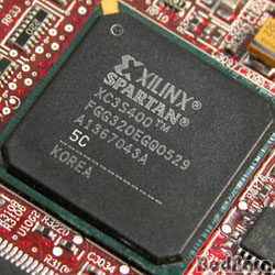Radeon X1800 XT Cross Fire Master Ä«µåÀÇ DVI Æ®·£½º¹ÌÅÍ¿Í ¸®½Ã¹ö Ĩ¼ÂÀº ¹Ù²î¾úÁö¸¸, ¾Æ³¯·Î±× DACÀº Radeon X850 XT Cross Fire Master¿Í µ¿ÀÏÇÑ Analog Device»çÀÇ ADV7123ÀÌ »ç¿ëµÇ¾ú´Ù. Cross FireÀÇ ÇÙ½ÉÀÎ ÄÄÆ÷ÁöÆÃ ¿£Áøµµ °°Àº FPGA (Field Programmable Gate Array) Ĩ¼ÂÀÎ XILINK»çÀÇ SPARTAN XC3S400ÀÌ ¾²¿´´Ù.