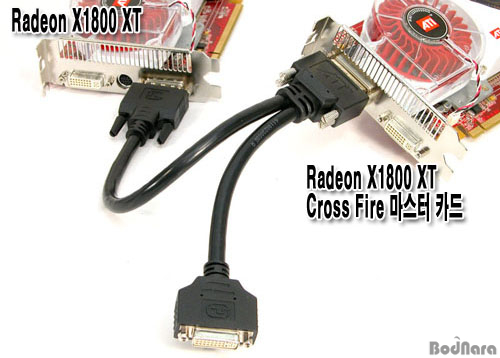 Dual-Link DVI¸¦ Áö¿øÇϱâ À§Çؼ 2°³ÀÇ ±×·¡ÇÈ Ä«µå¸¦ ¿¬°áÇÏ´Â Cross Fire¿ë Y-ÄÉÀ̺íÀÇ ¸ð¾çµµ º¯Çß´Ù. DVI ÀԷ°ú Ãâ·ÂÀ» µ¿½Ã¿¡ Áö¿øÇÏ´Â Cross Fire ÄÉÀ̺íÀÇ DMS-59 Æ÷Æ® ¿¬°á ºÎºÐÀº ÁÂÃøÀÇ Radeon X850 XT Cross Fire¿ë ÄÉÀ̺íÀº ÇÉÀÌ ¸¹ÀÌ ºÙ¾îÀÖ´Â DVI Æ÷Æ®¿Í ºñ½ÁÇÏ°Ô »ý°åÁö¸¸, ¿ìÃø¿¡ º¸ÀÌ´Â Radeon X1800 XT Cross Fire¿ë ÄÉÀ̺íÀº ¿¬°á Æ÷Æ®°¡ »óÇÏ·Î ³ª´²Á®¼ Dual-Link DVI¿¡ ´ëÀÀÇϵµ·Ï ¹Ù²î¾ú´Ù.