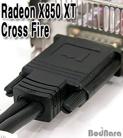 Cross Fire ÄÉÀ̺íÀÇ ¿¬°á ¹æ¹ýÀº Radeon X850 XT Cross Fire¿Í µ¿ÀÏÇÏ´Ù. DVI Æ÷Æ®°¡ ¾Æ´Ï¶ó D-SUB Æ÷Æ®¸¦ »ç¿ëÇÏ´Â ¸ð´ÏÅÍ¿¡ ¿¬°áÇϱâ À§Çؼ´Â ÀÏ¹Ý DVI ÀÔ·Â Æ÷Æ®¿Í ¸¶ÂùÀÚ±â·Î DVI to D-SUB º¯È¯ Á¨´õ¸¦ »ç¿ëÇÏ¸é µÈ´Ù.