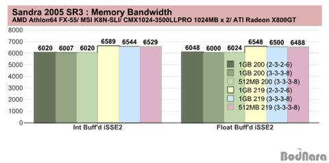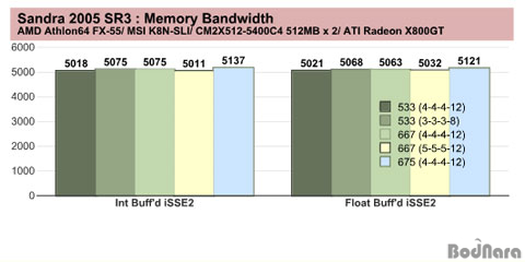 Sandra 2005 SR3ÀÇ ¸Þ¸ð¸® ´ë¿ªÆø üũ °á°ú 2-3-2-6ÀÇ ¸Þ¸ð¸® ŸÀÌ¹Ö °ª¿¡¼ °¡Àå ³ôÀº ´ë¿ªÆøÀ» È®º¸ÇÒ ¼ö