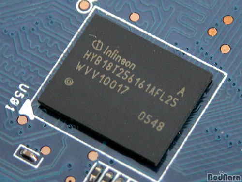 EN7300GSÀÇ ¸Þ¸ð¸®´Â Infineon 2.5ns DDR2 ¸Þ¸ð¸®°¡ 128MB ¿ë·®À¸·Î ´Þ·ÁÀÖ´Ù. ÇÏÁö¸¸ GeForce 7300 GS¿¡ Àû¿ëµÈ Turbo Cache ±â¼úÀ» ÅëÇØ ½Ã½ºÅÛ ¸Þ¸ð¸®¸¦ ²ø¾î´Ù ÃÖ´ë 512MBÀÇ ÇÁ·¹ÀÓ ¹öÆÛ ¸Þ¸ð¸®¸¦ ±¸¼ºÇÒ ¼ö ÀÖ´Ù. ¸Þ¸ð¸® µ¿ÀÛ Å¬·°Àº DDR 810MHzÀ¸·Î 2.5ns DDR2 ¸Þ¸ð¸®ÀÇ ±âº» Ŭ·°ÀÎ DDR 800MHzº¸´Ù ¾à°£ ¿À¹öµÈ »óÅ´Ù.