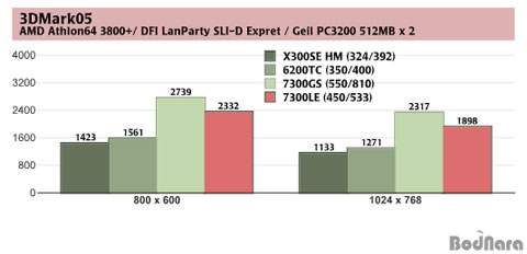 ¸ÕÀú, 3DMark05 Å×½ºÆ®ÀÇ °æ¿ì »õ·Î¿î ¾ÆÅ°ÅØÃİ¡ Àû¿ëµÈ 7300GS¿Í
