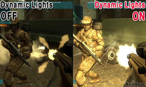 ´ÙÀ̳ª¹Í ¼Îµµ¿ì Ç׸ñÀº ij¸¯Åͳª »ç¹°ÀÇ ±×¸²ÀÚ°¡ ±¤¿ø¿¡ µû¶ó ºñÄ¡´Â È¿°ú¸¦ Ç¥ÇöÇØÁÖ¸ç, Off - Low - HighÀÇ 3´Ü°è·Î ¼³Á¤ÀÌ °¡´ÉÇÏ´Ù. ÇÏÁö¸¸ ´ëºÎºÐÀÇ °Ç¹°À̳ª °íÁ¤µÈ ¸Ê ¿ÀºêÁ§Æ®µéÀº ´ÙÀ̳ª¹Í ¼Îµµ¿ì¿¡ ¿µÇâÀ» ¹ÞÁö ¾Ê´Â °íÁ¤µÈ ±×¸²ÀÚ¸¦ °¡Áö°í ÀÖ´Ù.