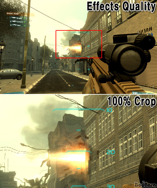 ÀÌÆåÆ® Ä÷¸®Æ¼ Ç׸ñÀº »ç¹°ÀÇ Æø¹ßÀ̳ª ºÒÀÌ ³µÀ» ¶§ÀÇ ÁÖº¯ ±×·¡ÇÈÀÇ À̱۰Ÿ²À» º¸¿©ÁÖ´Â °ÍÀ¸·Î, ¾Æ·¡ÀÇ Æø¹ß Àå¸é 100% Å©·Ó À̹ÌÁö¸¦ º¸¸é À¯ÅºÀ» °Ç¹°¿¡ ¹ß»çÇßÀ» ¶§ Æø¹ß°ú ÇÔ²² ¼¶±¤À» Áß½ÉÀ¸·Î ÁÖº¯ÀÇ °Ç¹° ÀÌ Àϱ׷¯Áø °Íó·³ º¸ÀÌ°Ô µÈ´Ù.  Low - Medium - HighÀÇ 3´Ü°è Á¶ÀýÀÌ °¡´ÉÇϸç, Low ¸ðµå·Î ³õÀ» °æ¿ì ÀÌ·¯ÇÑ Àϱ׷¯Áö´Â ¸ð¾çÀº ³ªÅ¸³ªÁö ¾Ê´Â´Ù. ÇÏÁö¸¸ Medium°ú High ¸ðµå´Â Å« Â÷À̸¦ ¹ß°ßÇÏ±â ¾î·Æ´Ù.