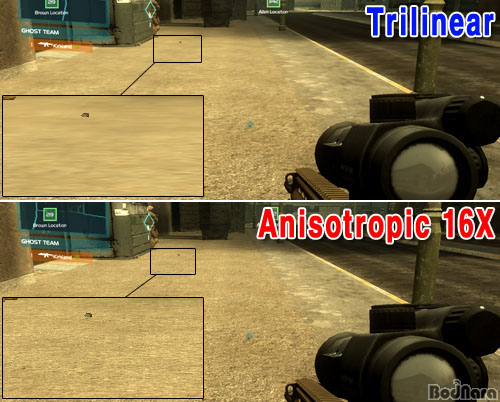 ÅØ½ºÃÄ ÇÊÅ͸µ Ç׸ñÀº ½±°Ô ¾ê±âÇÏÀÚ¸é ¸Ö¸®ÀÖ¾î¼ ¹¶°ÔÁö´Â »ç¹°À» ¼±¸íÇÏ°Ô Ç¥ÇöÇØÁÙ ¼ö ÀÖ´Â ¿É¼ÇÀ¸·Î, °í½ºÆ® ¸®ÄÜ : ¾îµå¹ê½ºµå ¿öÆÄÀÌÅÍ¿¡¼´Â Trilinear¿Í Anisotropic 4X / 8X / 16XÀÇ ÃÑ 4´Ü°è·Î ¼³Á¤ÀÌ °¡´ÉÇÏ´Ù. ÅØ½ºÃÄ ÇÊÅ͸µ ¿É¼ÇÀ» ³ô°Ô ¼³Á¤Çϸé À§ÀÇ À̹ÌÁöó·³ ¸Ö¸®¿¡ ÀÖ´Â ºÎºÐÀÌ ¼±¸íÇÏ°Ô Ç¥½ÃµÈ´Ù.