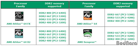À§ÀÇ Ç¥´Â »õ·Î¿î ¼ÒÄÏ AM2 Á¦Ç°±ºÀÌ Áö¿øÇÏ´Â DDR2 ¸Þ¸ð¸® Á¾·ù¸¦ ¼³¸íÇѰÍÀ¸·Î½á À§ÀÇ Ç¥¸¦ º¸¸é ½Ì±ÛÄÚ¾î Á¦Ç°µéÀº ÃÖ´ë DDR2-667(PC2-5300) ¸Þ¸ð¸®±îÁö Áö¿øÇÏ°í µà¾ó ÄÚ¾î Á¦Ç°µéÀº ÃÖ´ë DDR2-800 (PC2-6400) ¸Þ¸ð¸®±îÁö Áö¿øÇÏ´Â °ÍÀ¸·Î ³ªÅ¸³ª ÀÖ´Ù.